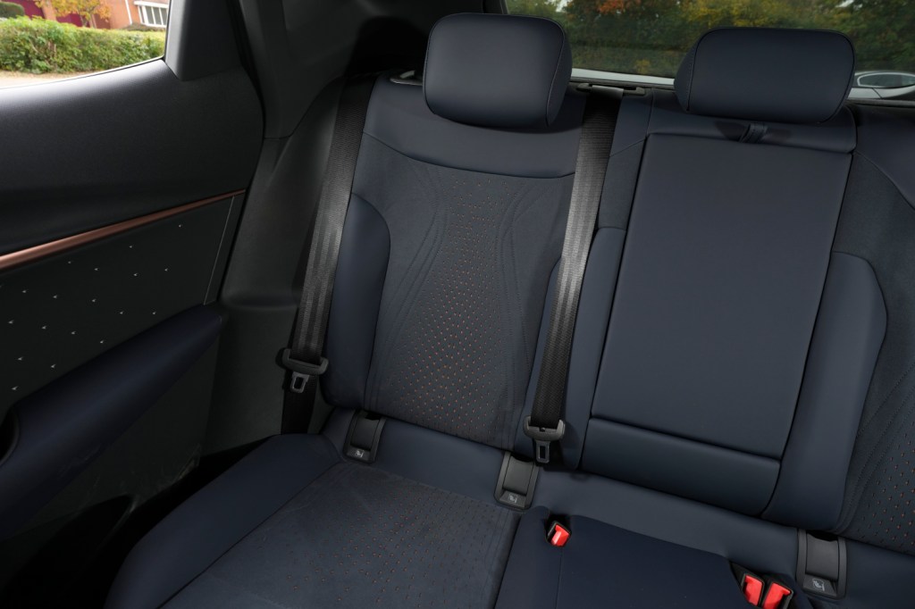 It features specialised R-Line microfibre upholstery with blue piping, which feels high-end and hard-wearing. Head and legroom are excellent, and the whole cabin feels spacious, air and well engineered.
