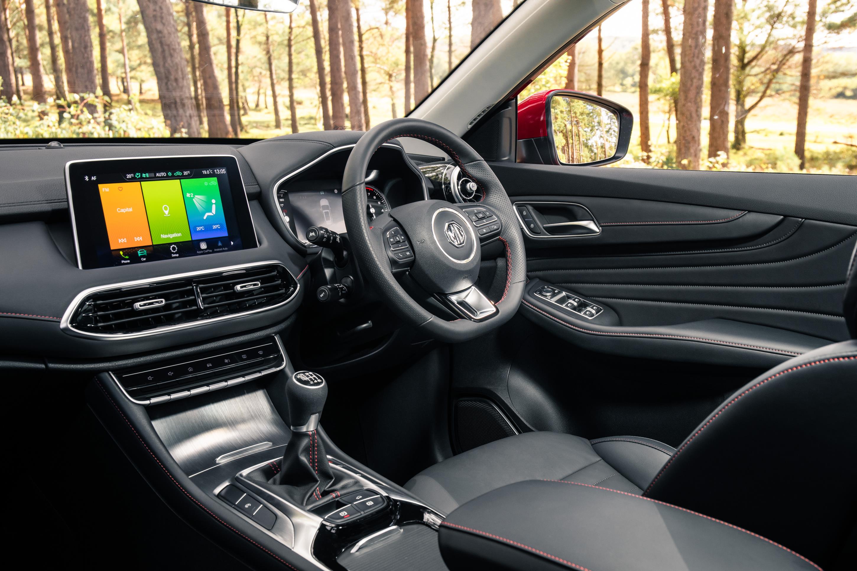The Exclusive DCT version driven here includes a button on the steering column, which engages the car Sport mode for that extra burst of speed and illuminates the interior’s red ambient lighting.