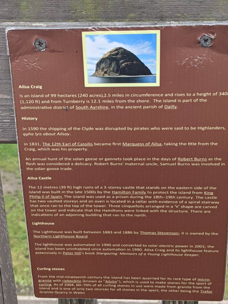 Turnberry itself offers some small beaches with rolling sand dunes and its flora, fauna and wildlife in general give the designation of Site of Special Scientifc Interest (SSSI), so well worth bringing our binoculars along. While Ailsa Craig still dominates here, further in the distance are the Isle of Arran.
