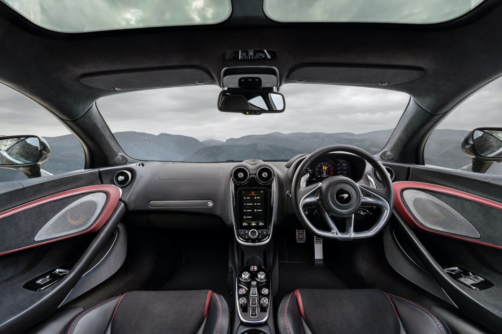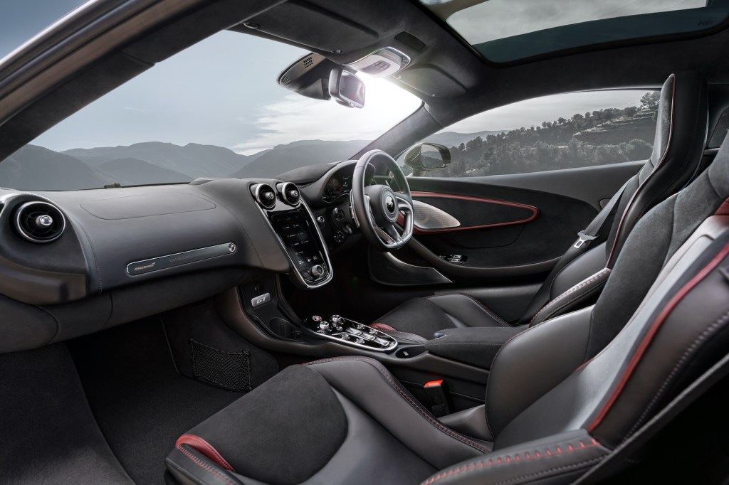 Creature comforts are catered for with the GT offering Standard, Pioneer and Luxe interior specifications with high-quality materials throughout and advanced technologies including ambient lighting, new McLaren Infotainment System II and optional electrochromic panoramic glazed roof.