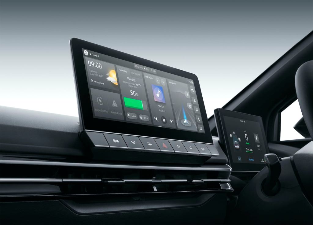 The touchscreen is the dominant feature of the minimalist layout. It comes with Apple CarPlayTM and Android AutoTM as standard. There is also a configurable seven-inch driver display that provides real-time information.