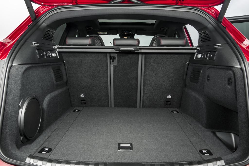 The finish to doors and dash, leather seats and ambient lighting giving the vehicle a real upmarket feel, with plenty of head and legroom, despite the sloping roofline.
