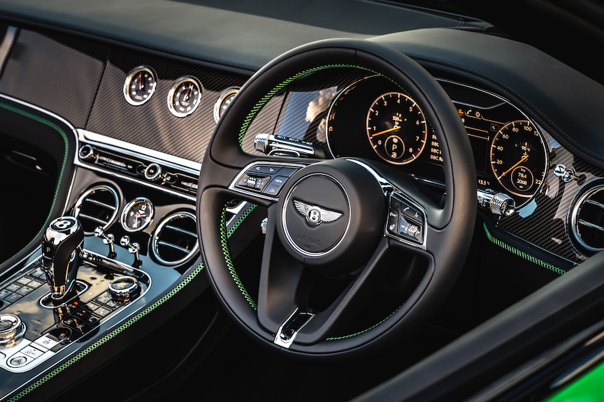 We love our convertibles in the UK but the weather doesn’t always play ball. But the Continental makes the wind in the hair experience hugely enjoyable. A discreet neckwarmer is integrated into the front seats, together with a heated steering wheel and heated armrests.