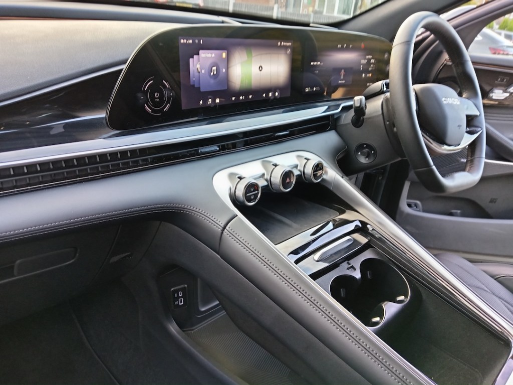While the graphics are top-notch, the menu system isn’t entirely intuitive, though the three rotary controls for climate and drive selection are easy to use.