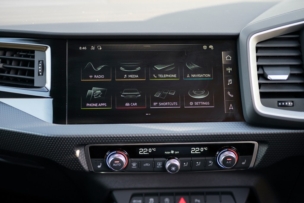 The centrepiece is the screen, which features navigation, smartphone connectivity via Apple CarPlay, DAB radio and also houses the reversing camera on this model. Other controls are functional, if looking slightly dated.