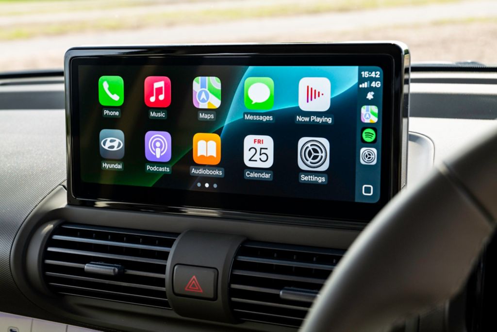 - A large, rotating tablet-style infotainment screen that controls major functions like connectivity, infotainment, and satellite navigation. Both accessible via Android Auto or Apple CarPlay.