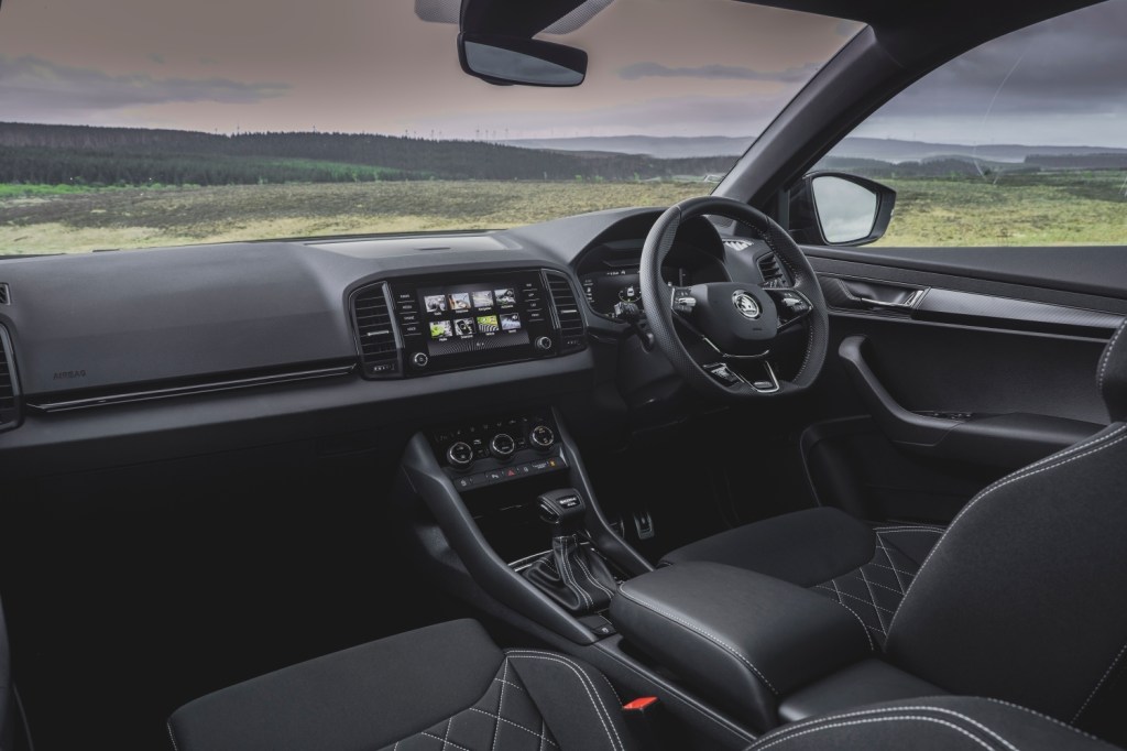 Upgrades include new body-coloured sporty bumper sitting below the wider, restyled hexagonal grille, smart roofbars, slimmer lights to front and rear, privacy glass and panoramic roof, and Karoq lettering is featured on the doors sills and 19-inch alloy wheels.